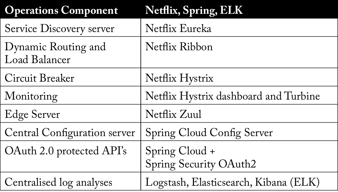 下表是在微服务操作模型中通用组件和我们在博客中将要使用实际组件对照: